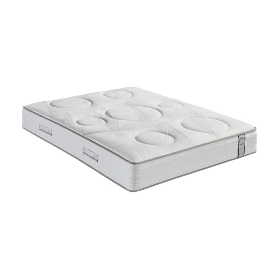 Une suspension 100% ressorts ensachés médium avec un cadre métallique de renfort assure une parfaite géométrie du matelas dans le temps.