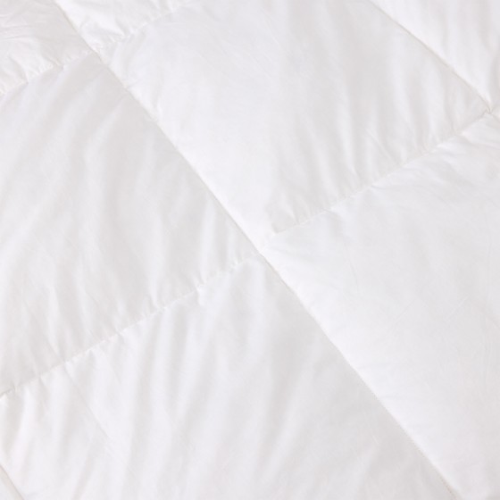 Enveloppe 100% batiste de coton et garnissage 70% duvet de canard neuf et 30% plumettes, pour un confort moelleux et respirant.