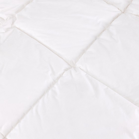 Enveloppe 100% batiste de coton et garnissage 70% duvet de canard neuf et 30% plumettes, pour un confort moelleux et respirant.