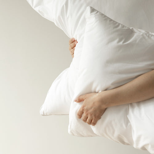 Oreiller en duvet naturel, soutien ferme et accueil moelleux.